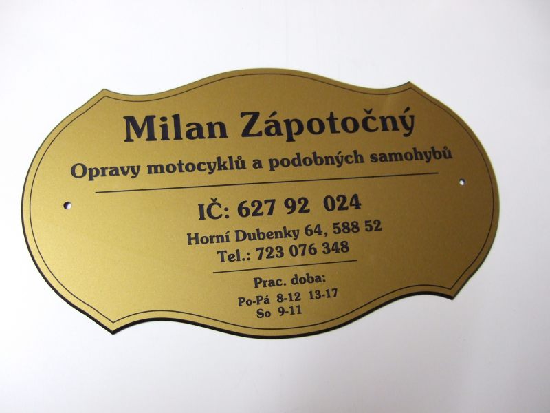 Vyrobil jsem spoustu všech možných i nemožných cedulek a cedulí z plastu, mosazi, hliníku atd. Tady je pár fotek na ukázku.